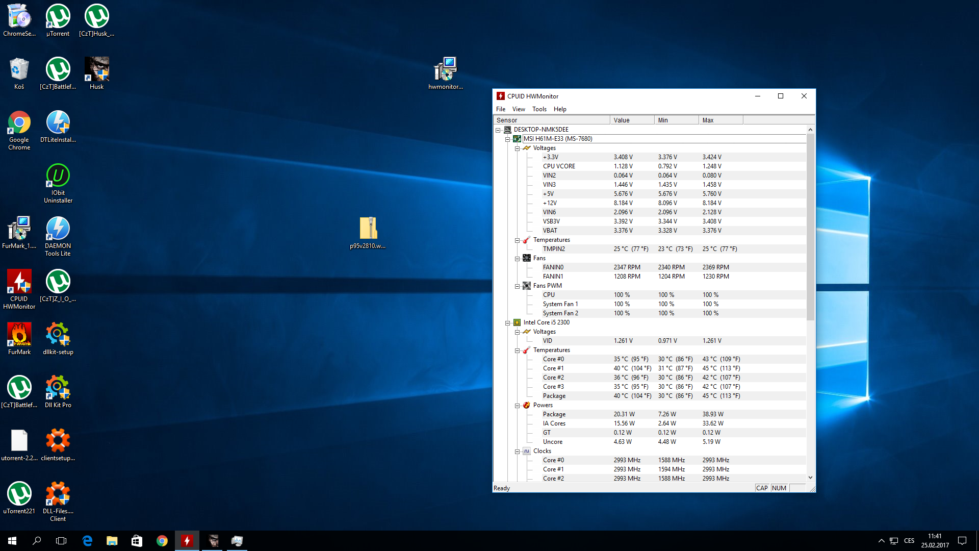 Pusť ten HW monitor nech jej na pozadí a jdi si něco zahrát, nebo místo hry pusť ten Prime a FurMark.
