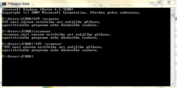 Obrázky se dávají sem, jako příloha. Máš to špatně sfc /scannow