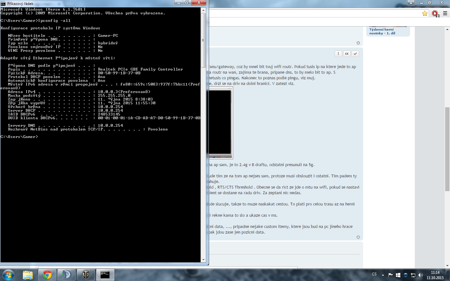 V přikazovém řádku se nevyznám napsal sem do ní jen ipconfig -all a tohle mi dalo a dál nevím
