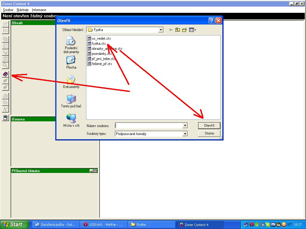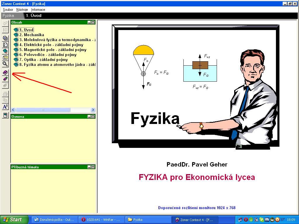 Něco děláš špatně. Najeď na tu knihu a klikni otevřít dokument, potom v novém okně klikni na fyzika a otevři.