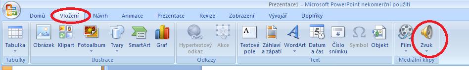 Zvuk vložíš přes menu podle obrázku.