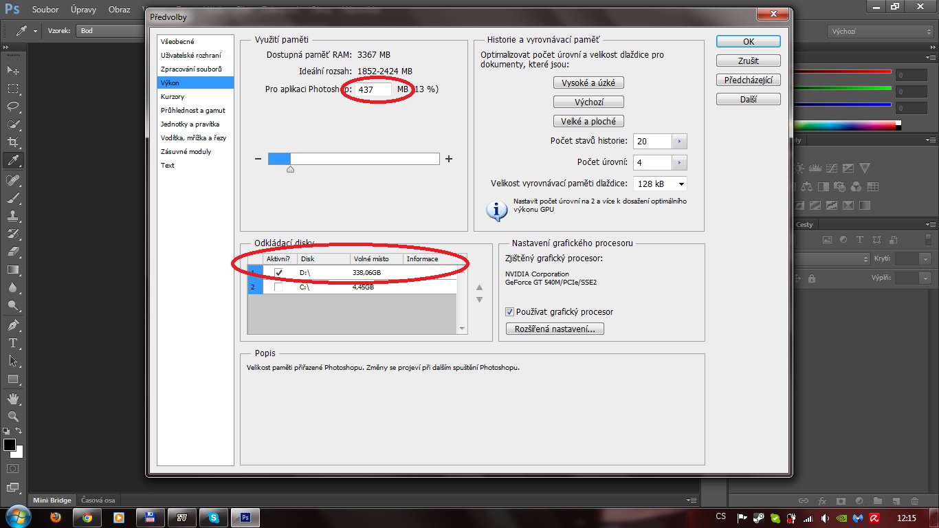 Laikka píše:alokuj scratchdisk na D: (jak radí petr22) - najdeš v předvolbách.