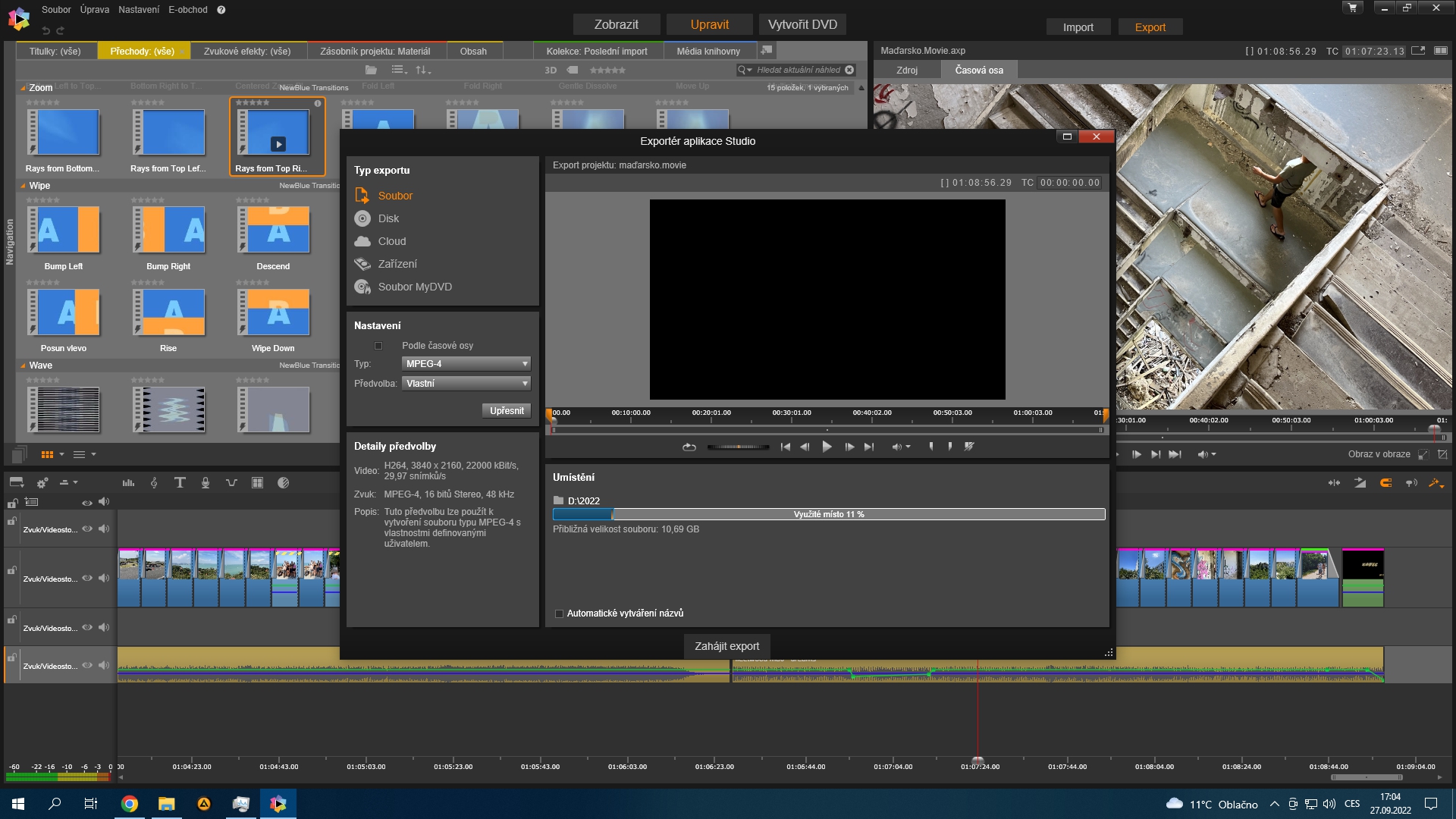 Tak dneska jsem zkusil exportovat video, u kterého jsem nastavil datový tok na 38Mbit/s namísto 40Mbit/s a vylezlo z toho funkční video, i když se zajímavým názvem a nějakým dalším souborem, který to mělo po dokončení smazat, ale neudělalo to. Tak teď jsem zmaten