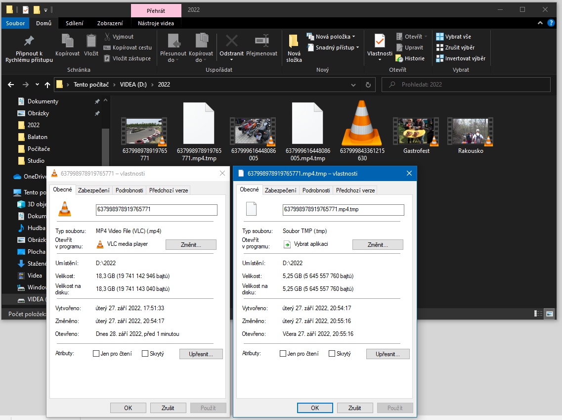 Problém však nastává, když má program zpracovat větší sousto jako je například video o délce 1 hodiny a více se spoustou přechodů u fotek. Nastavení stále stejné, zdrojové videa jsou ve formátu mp4 s rozlišením 4K na 30fps a datový tok 60Mbit/s. Render mám nastaven na stejný formát mp4, rozlišení 4K 30fps a datový tok 40Mbit/s potažmo maximu, co Pinnacle dovolí. Export vždy proběhne celý, nezasekne se nic ani po dokončení, nevyskočí chyba, vše proběhne, ale ve složce vždy najdu jen soubor, který není možné otevřít a má špatný název, jakoby Pinnacle zapomněl dokončit soubor (viz druhý obrázek). Update nepomohl, render v jiném formátu, vůbec nic nepomáhá.