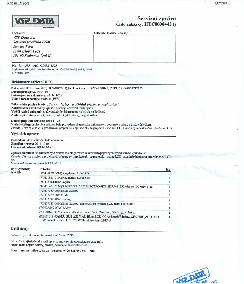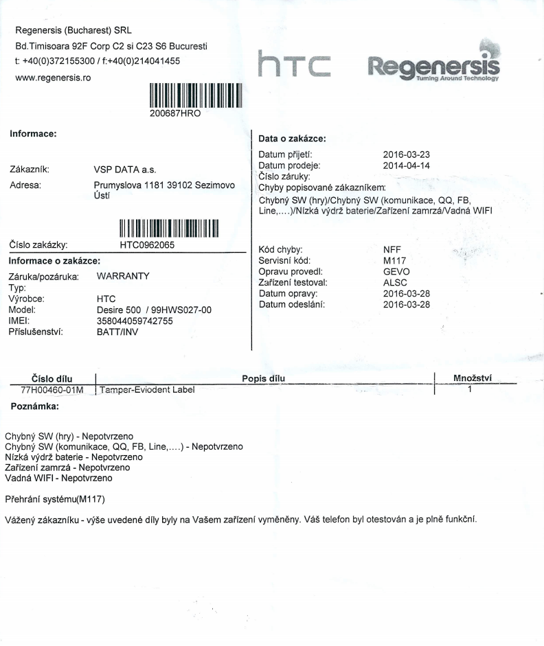 lennonreloaded: Jelikož se už opravy telefonů nedělají u HTC v ČR, tak se posílají do Rumunska, kde se opravují.