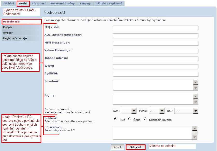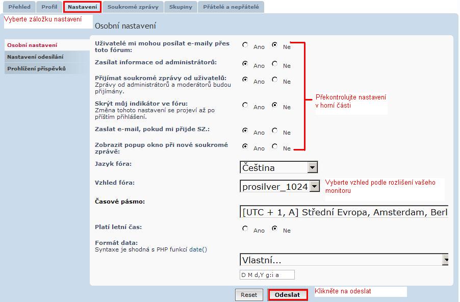 - Kontrola osobního nastavení fóra než začnete první příspěvek