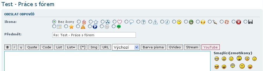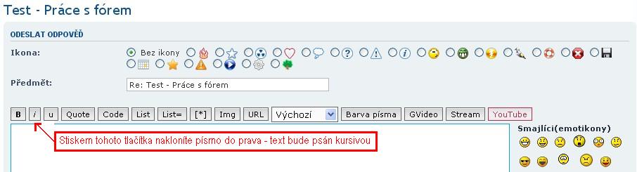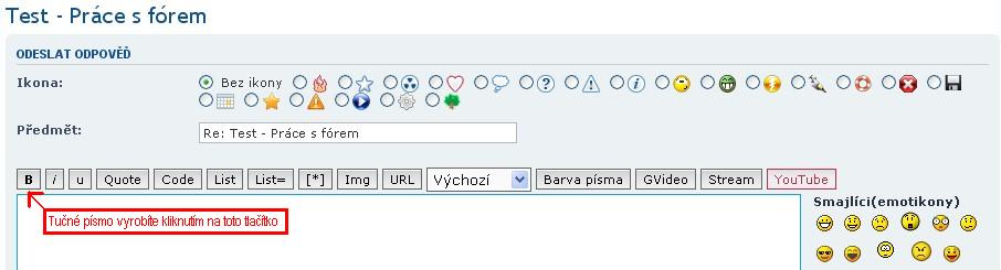 - Oddělovací čára - Tlačítko "HR" v editačním okně odpovědi