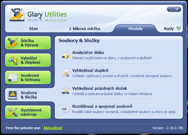 Glary Utilities je soubor několika jednoduchých a výkonných systémových nástrojů pro opravu, zrychlení, údržbu a ochranu vašeho PC.