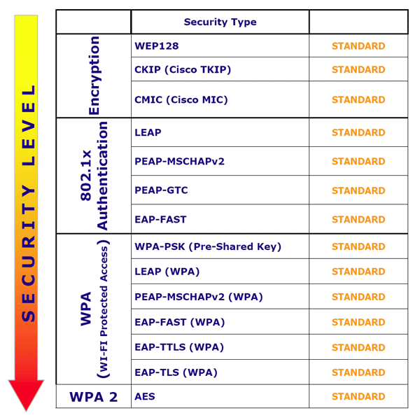 Toto jsou druhy šifrování. Věnoval jsem se jim v oddíle bezpečnosti. Rychlý závěr - snažte se používat WPA2, je nejbezpečnější.