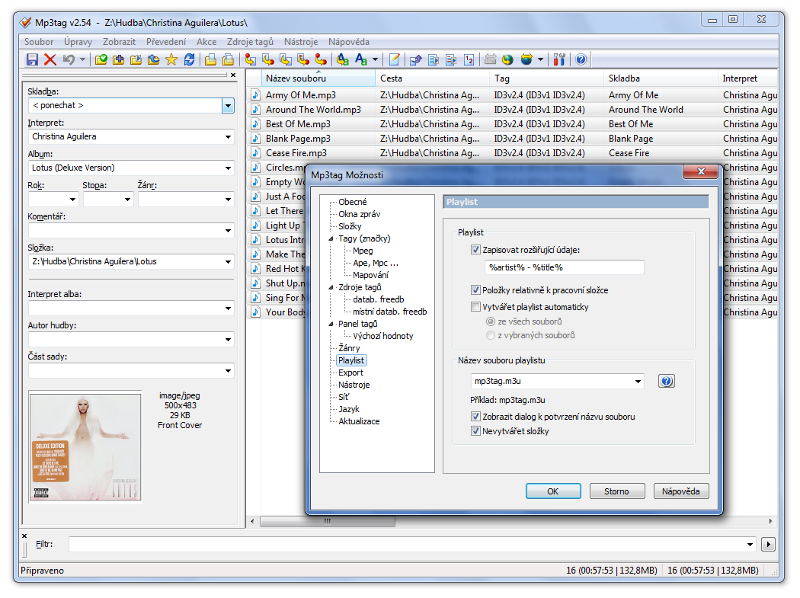 MP3Tag rovněž umí na Internetu vyhledat a stáhnout obal alba, takže pak jej programy jako je výše zmíněný Winamp mohou k danému albu zobrazovat v hudební knihovně, což je nejen efektní, ale pro lepší orientaci i praktické. Další šikovnou funkcí programu MP3Tag je generování playlistů v klasickém formátu M3U, který podporují takřka všechny hudební přehrávače ve smyslu počítačových programů i fyzických zařízení.