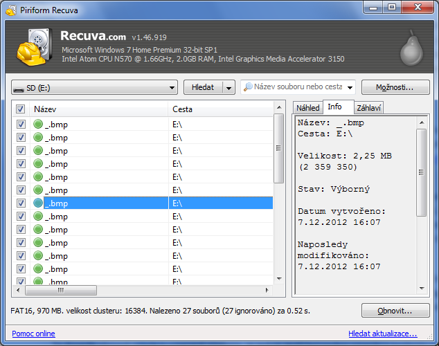 A právě to dělá program Recuva. Ovšem je nutné jeho služeb využít co nejdříve po nechtěném smazání souborů. Pokud se totiž soubory smažou a na dané paměťové médium se ukládají nová data, tak ta mohou původní soubor částečně či zcela přepsat. Obnova pak již nebude možná anebo se nanejvýš povede obnovit jen fragmenty souborů.
