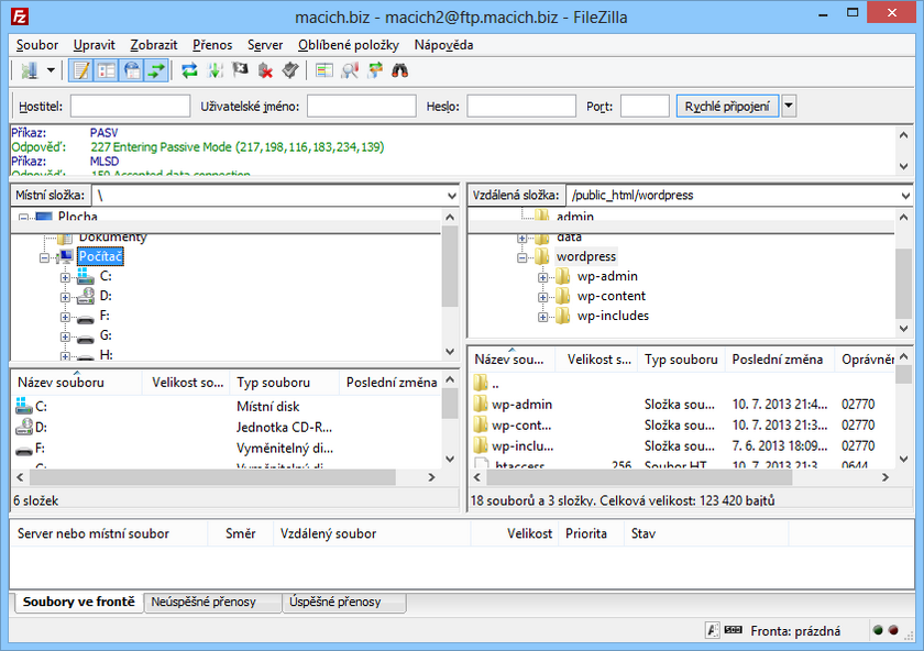 Na komplexní zálohu rozhodně nezapomeňte předtím, než se pustíte do přestavby či rekonstrukce svých stránek. Záloha se může hodit také při nechtěném smazání souborů. Pamatujte, že soubory smazané prostřednictvím FTP klienta nekončí v koši, ze kterého by je šlo jednoduše obnovit jako třeba soubory omylem smazané z pevného disku pod MS Windows.