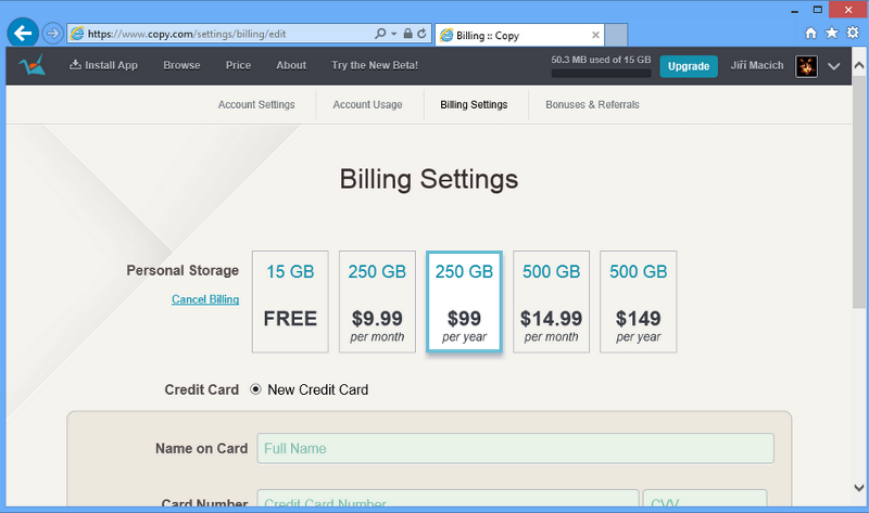 Jak ale nedávno propočítal server Lupa.cz, služba obecně patří k těm nejlevnějším na trhu. Není proto přehnané tvrdit, že se snaží rozpoutat cenovou válku. Našince však může odrazovat vyžadovaná přímá platba kartou, na což na českém trhu nejsme zatím tak zvyklí jako v severoamerických nebo západoevropských zemích. PayPal či podobnou službu Copy.com nepodporuje.