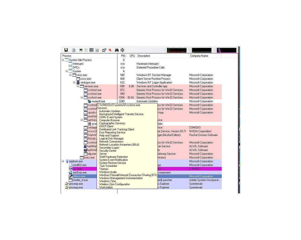 opět sem zapomněl jak ho rozbalíš ten svchost.exe který ti tolik "žere" CPU tak sem vypiš ty položky nebo sem dej sceenshot.