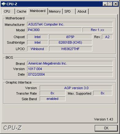 4 )Další důležitá záložka je Mainboard - řekne vám vše o vaší základní desce.Vypadá takto: