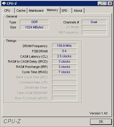 5 )záložka memory - zobrazuje informace o aktuálním stavu a nastavení operační paměti (RAM)