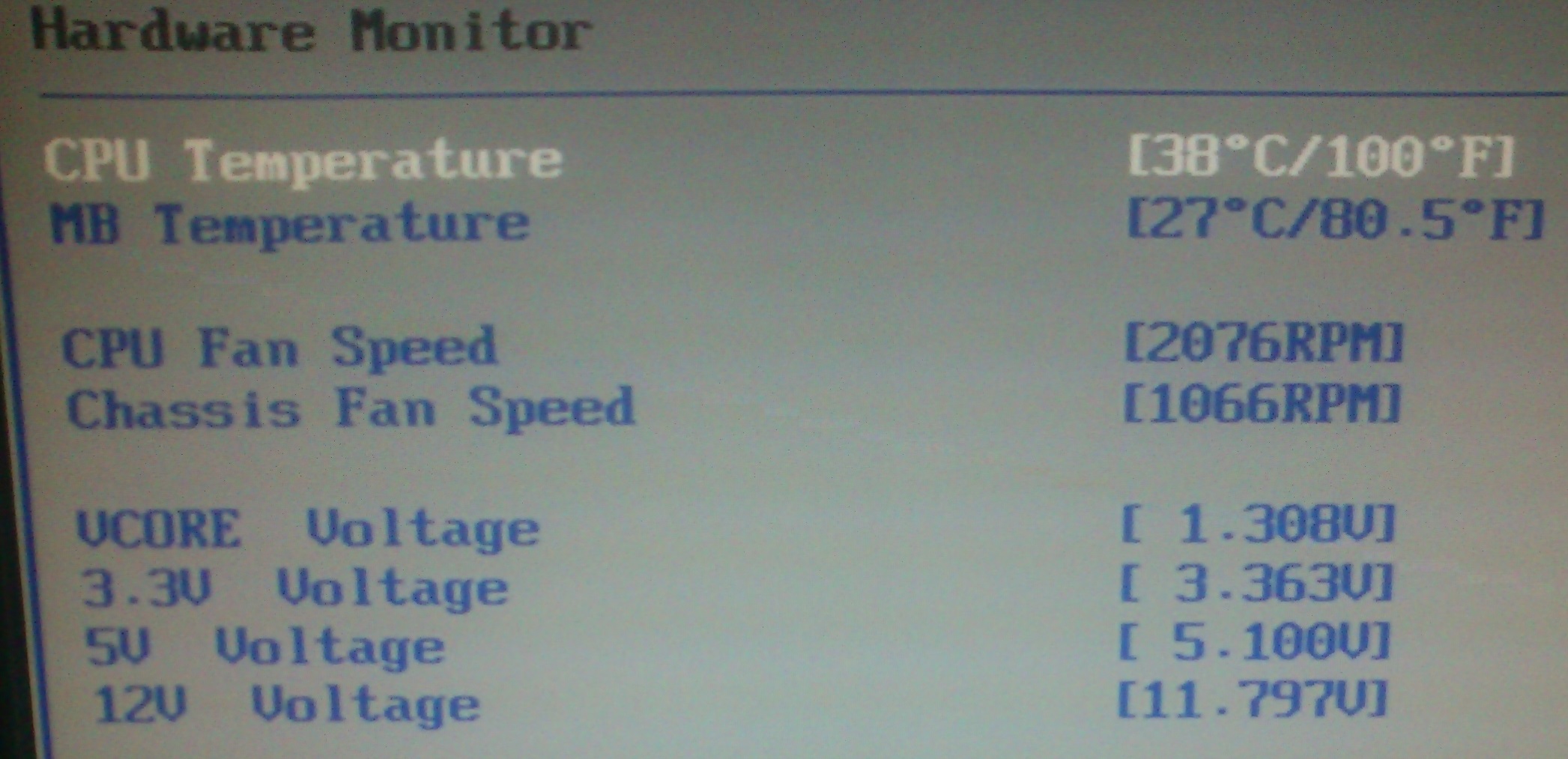 všechno? měl sem tam jen cpu 49°c a cpu fan speed je 2083RPM ty Volty sem neopisoval