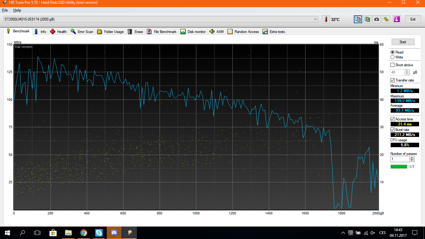Prosím ještě udělej test disku v HD Tune (error scan a benchmark). Potřebuji screenshoty těch výsledků.