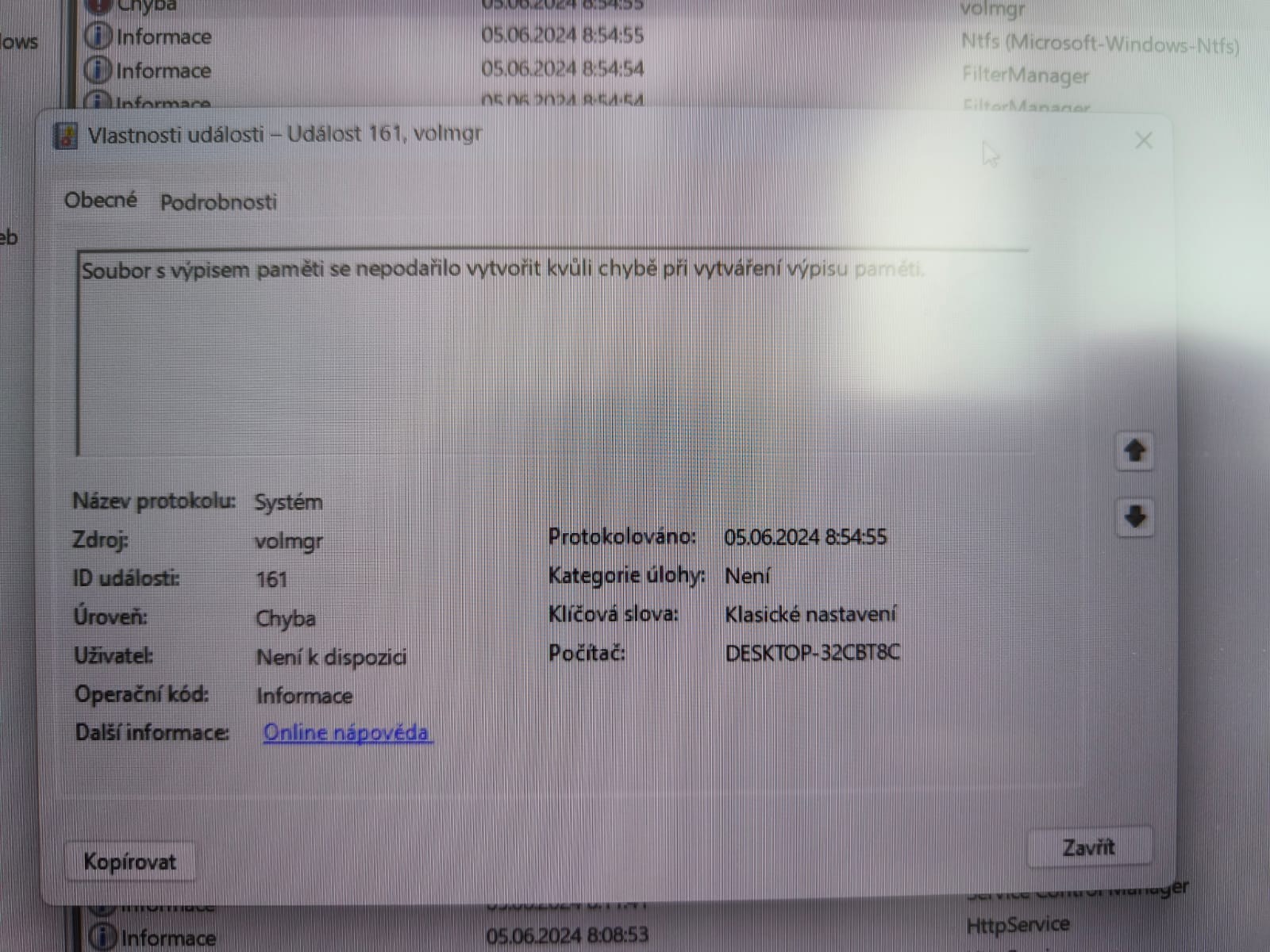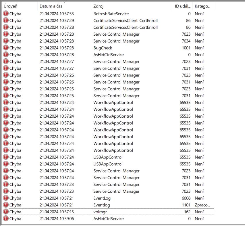 Nedodán kompletní eventlog. Pokyny k založení tématu: viewtopic.php?f=118&t=129195