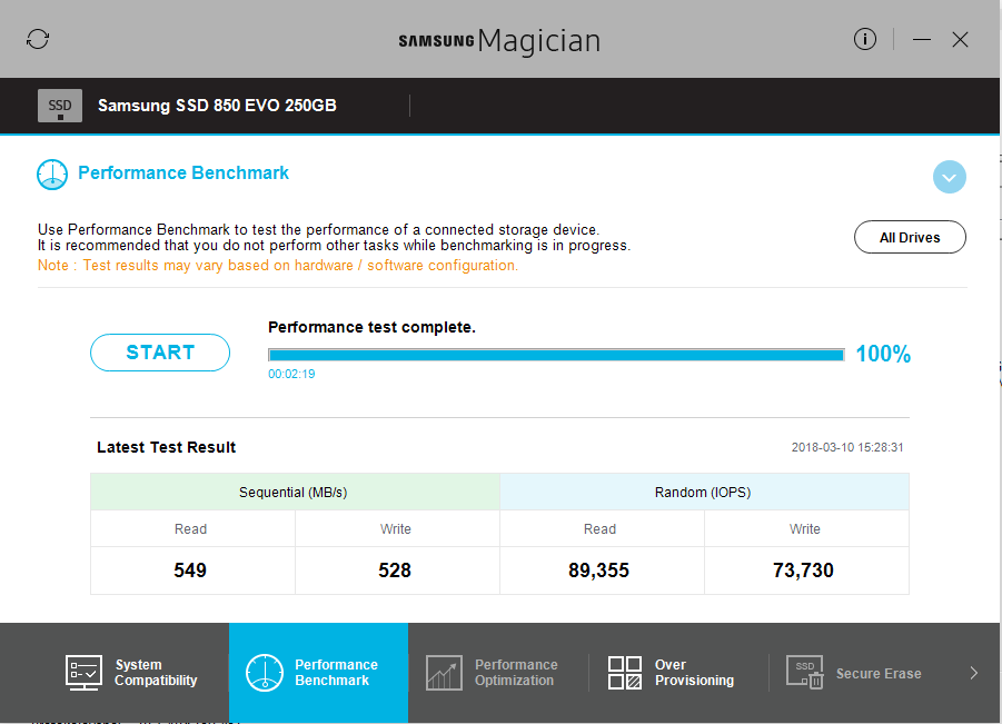 Ak poużívaš Magician,tak aktuálnu verziu?Môžeš si spraviť zálohu OS,potom spraviť formát disku a aj test na rýchlosť.