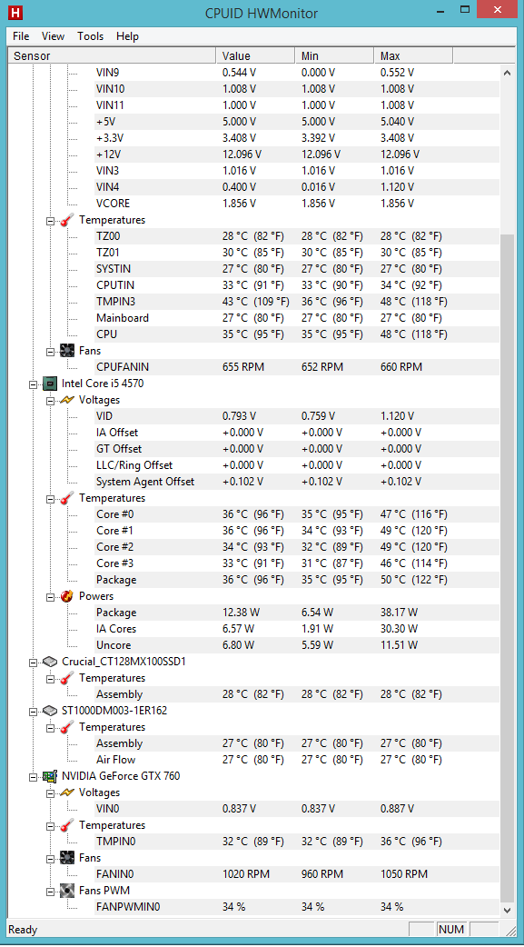 Síťovku i BIOS sem aktualizoval, nic. Teploty přikládám v příloze, myslím, že jsou pěkné. Při Crysis 3 na High jsem se nedostal nad 45°C s CPU a 70°C s GPU.