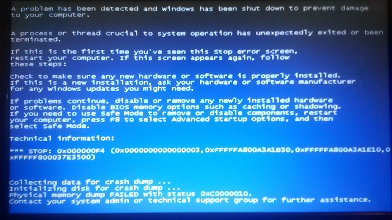 Ano, příčinou bude vadný disk. Dochází k ukončení klíčového procesu pro běh Windows (wininit.exe, crss.exe, ....).