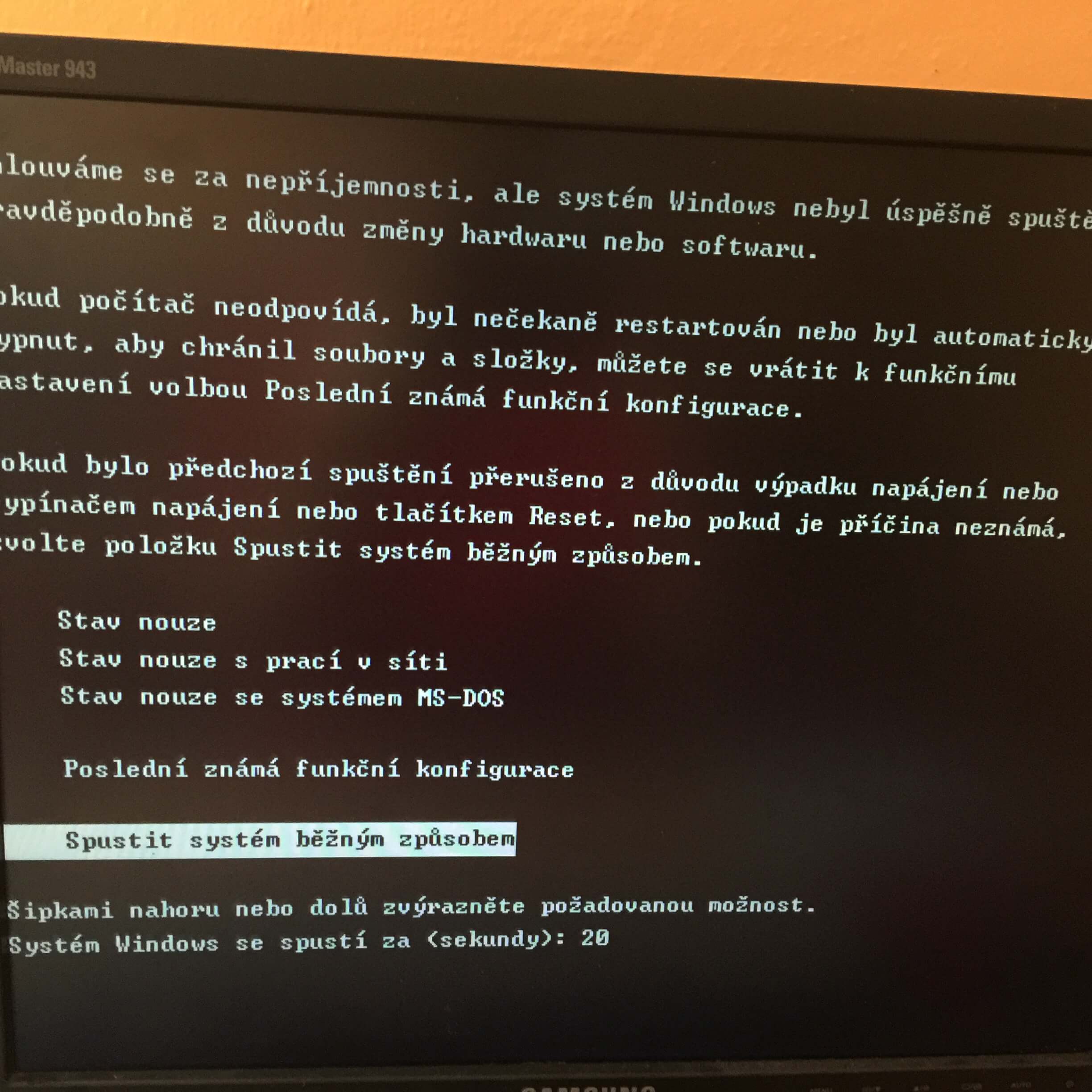 Počítač se zapne, zeptá se mě zda to chci spustit v nouzáku nebo normálně, ale ať zvolím jakoukoli možnost, pokaždé to skončí BSOD s tou samou zprávou a restartuje se. Když jsem zablokoval restart po chybě a vyfotil si zprávu, tak jsem zjistil, že to má co dělat nejspíš s NTSF.