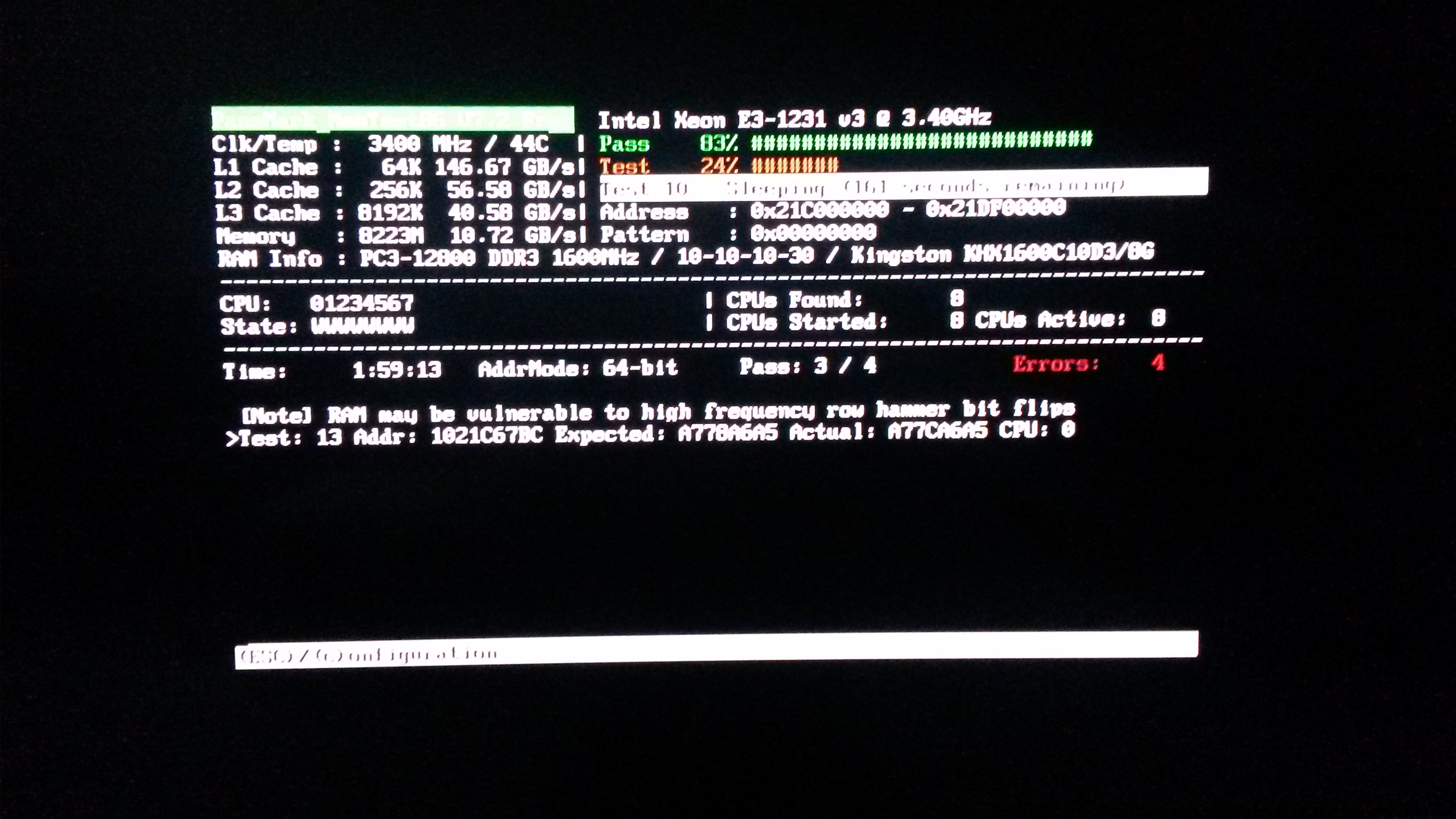 Memtest spusť jenom s 8 GB, tzn. před testem vydělej jeden modul a potom to prostřídej. Je potřeba nechat běžet test alespoň přes noc.