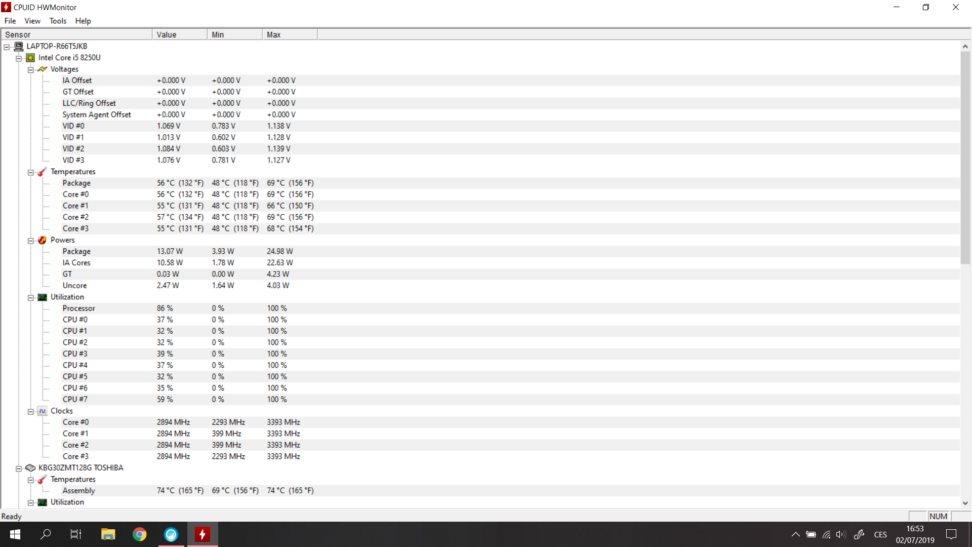 Máš ho na screenu. Ty teploty jsou skoro maximální dovolené u něho, takže pokud to odpovídá, tak se to tam pěkně smaží a v eventlogu je taky přehřívání.