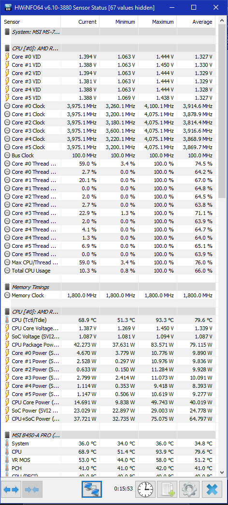K tým teplotám: prepastoval som procesor (bolo tam málo pasty) a toto sú teploty po 15min heavyloadu.