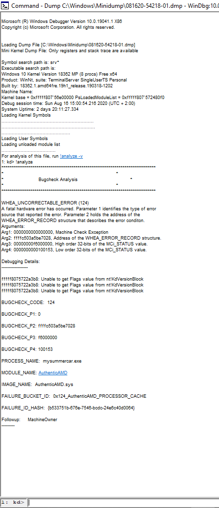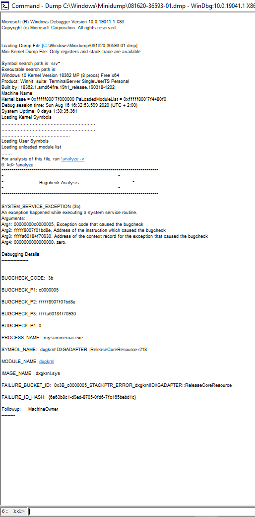 Ahoj, mám tady takový problém u konkrétní hry a to my summer car. Po chvilce hraní hodí systém BSOD - chybu: (system service exception) a počítač se restartuje . Zkoušel jsem odepřít automatickému restartu ale to nepomohlo,update driverů , přeinstalace systémů a dignostika paměti. I po procházení různých fór, jsem bez radný takže se obracím sem, s tímhle problémem. Jedná se o systém (w10)