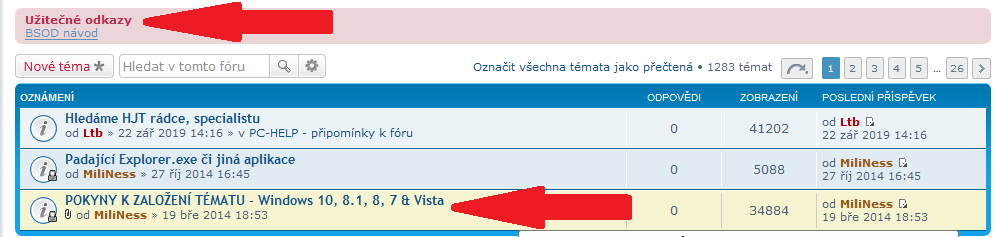 Sekce pro řešení potíží s BSOD (tedy pády Windows do tzv. modré smrti)