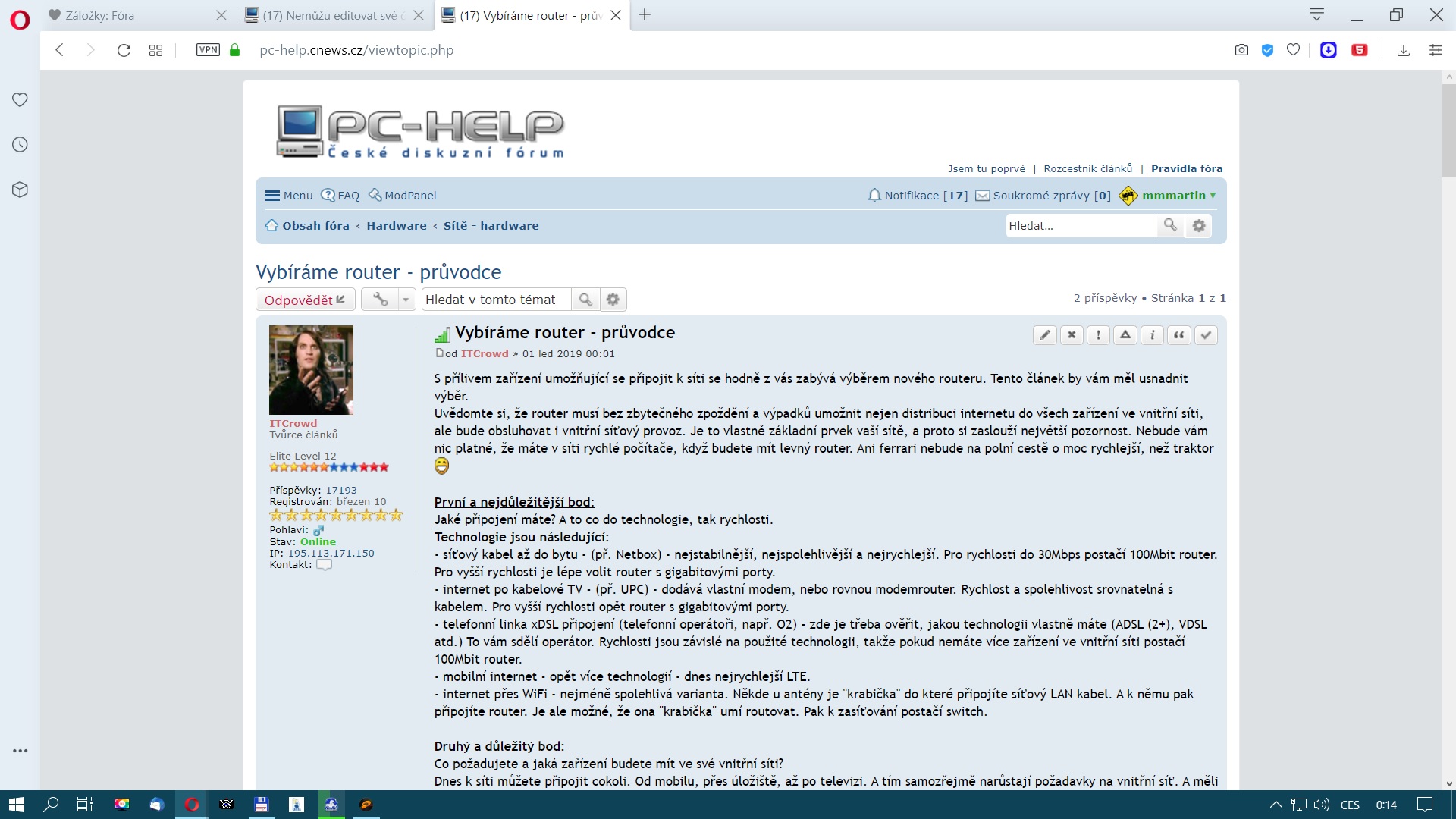 chtěl jsem doplnit svůj článek vybíráme router, ale chybí mi tam ikona pro editaci, téma přitom uzavřené není. U obyčejných témat ikonu pro editaci mám. Můžete na to mrknout? Dík.