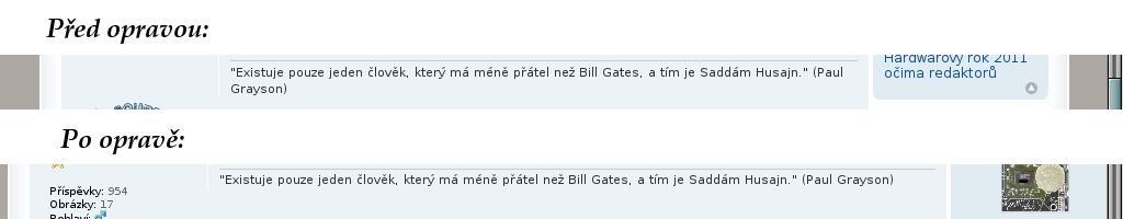 V novějším Firefoxu to nedělá? Zkoušel jsi vymazat dočasné soubory prohlížeče?faraon píše:Mám prosilver_1024 a ve starším Firefoxu na Ubuntu mi to dělá tu díru také.