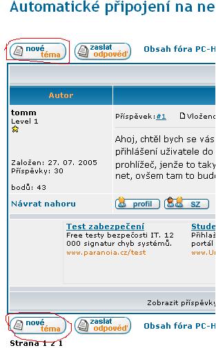 Chlapci možná že sem objevil ameriku a funguje to tahle pořád ale proč když jsem byl nepřihlášen připojen za proxi se mi v přízpěvku bez odpovědi zobrazuje vedle tlačítka odpovědět i tlačítko založit nové téma. Připadá mi to poněkud na hlavu.