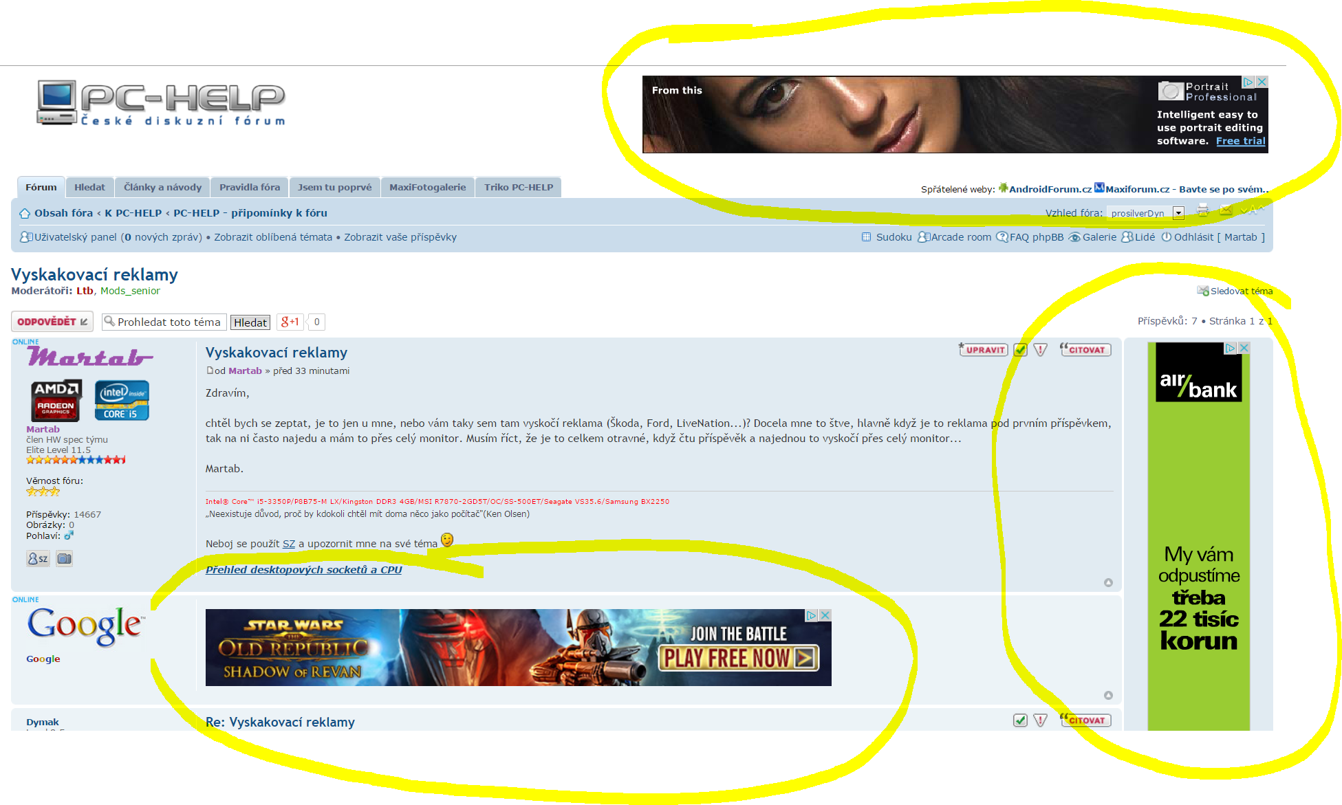 chtěl bych se zeptat, je to jen u mne, nebo vám taky sem tam vyskočí reklama (Škoda, Ford, LiveNation...)? Docela mne to štve, hlavně když je to reklama pod prvním příspěvkem, tak na ni často najedu a mám to přes celý monitor. Musím říct, že je to celkem otravné, když čtu příspěvěk a najednou to vyskočí přes celý monitor...