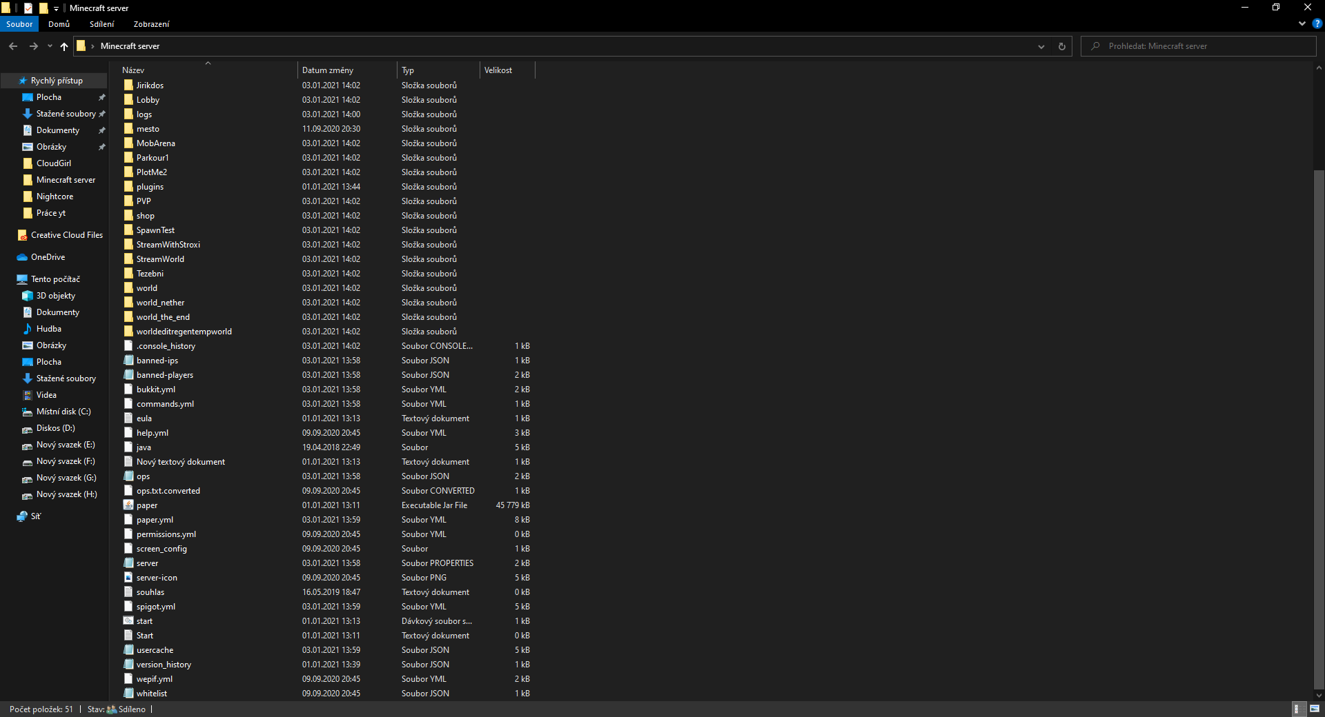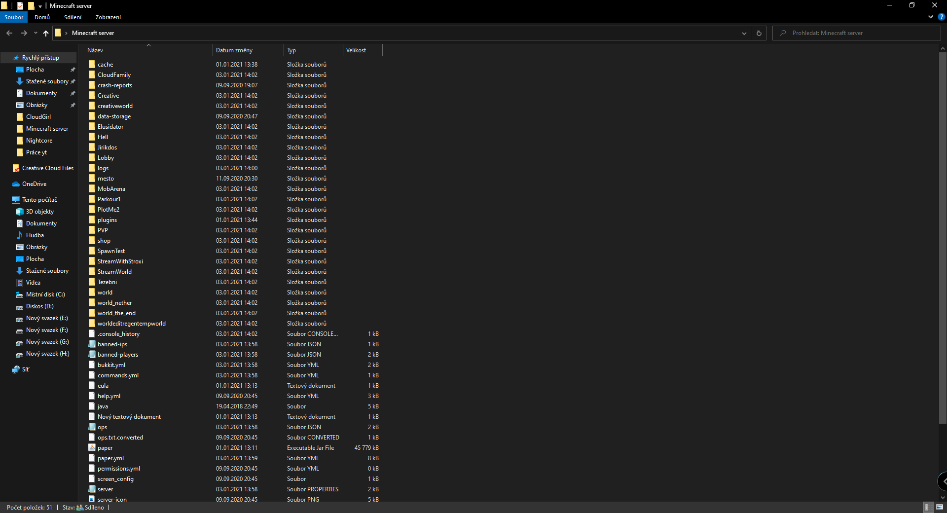 Ano celý adresář souborů: C:\Users\CloudGirl\Desktop\Minecraft server