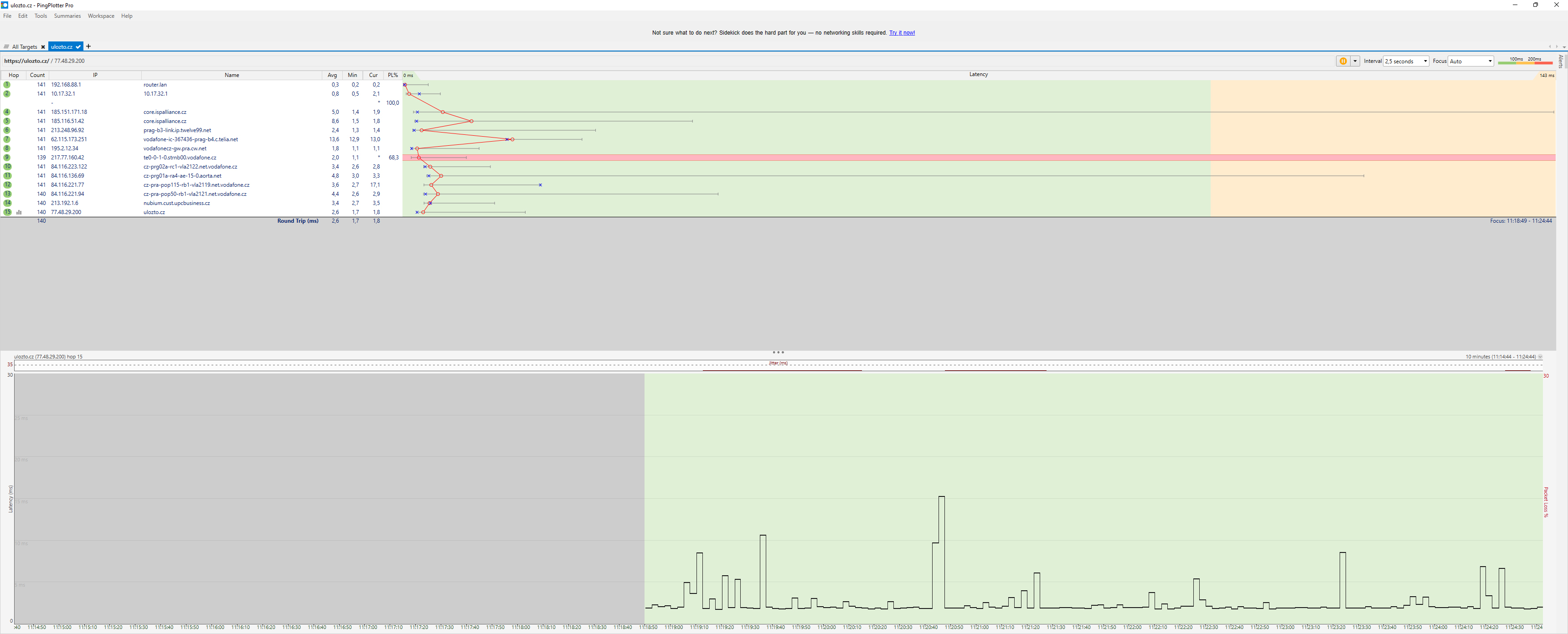 Dej sem screen z pingplotter, kde bude zaznamenán pád při stahování z uložta. Uvidíme, kde sse to sukuje...